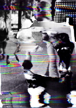 The newly emerging objectivity, on the variable border to abstraction, is achieved through several analog-digital processes laid one after the other. Artifacts from hardware, software, impurities and carrier material enrich the collages, charge them and transform them into new meaning.