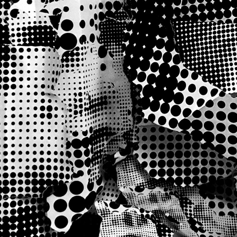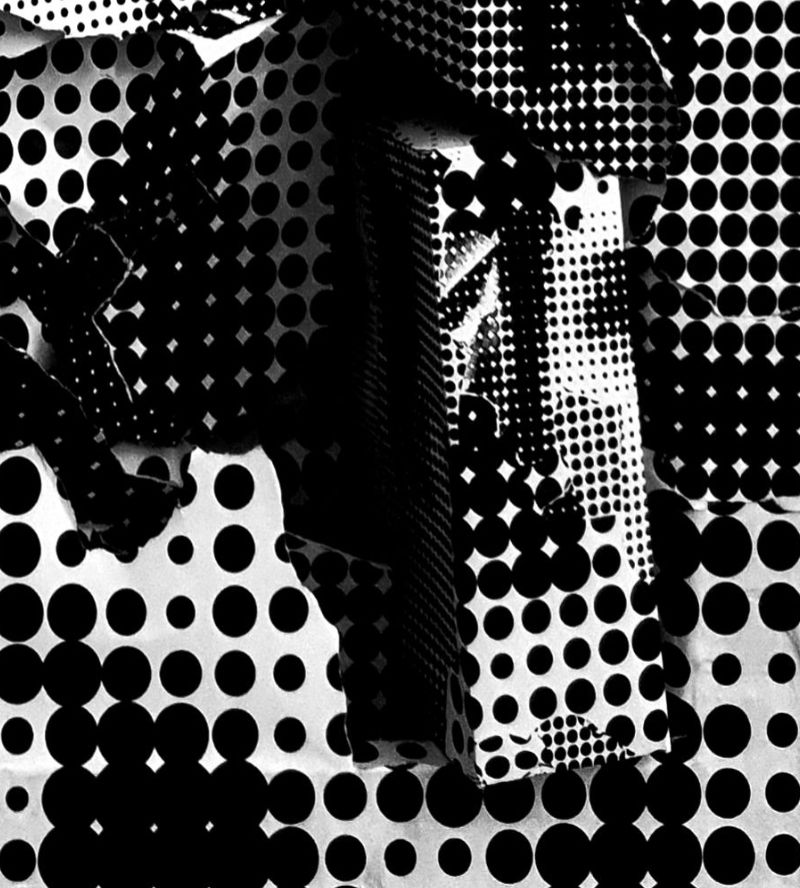 Technique: 3D - Collage, several layers of printed paper in black and white, wooden construction, cardboard.