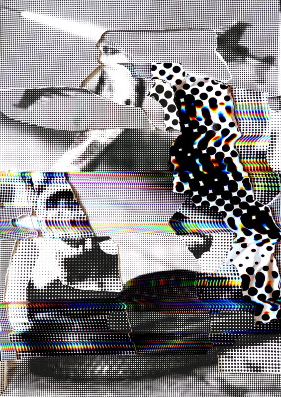 Die neu entstehende Gegenständlichkeit, an der variablen Grenze zur Abstraktion wird durch mehrere hintereinander gelegte analog - digital Prozesse erreicht. Artefakte aus Hardware, Software, Verunreinigungen, Trägermaterial reichern die Collagen an, laden sie auf und transformieren sie zu neuer Bedeutung.