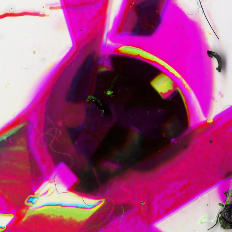 Die neu entstehende Gegenständlichkeit, an der variablen Grenze zur Abstraktion wird durch mehrere hintereinander gelegte analog - digital Prozesse erreicht. Hardware-Software Artefakte, Verunreinigungen, Trägermaterial, technische Defekte, reichern die Scans/Collagen an.